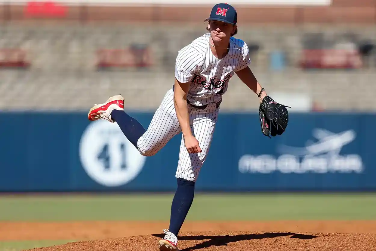 Cade Townsend, a right-hander from the University of Mississippi, enters 2026 as one of college baseball's most electric arms. He now has a nasty five-pitch arsenal that includes a new sweeper to complement his pre-existing cutter, curveball, fastball, and changeup. Townsend features an elite cut-ride fastball at 93-96 mph with high spin rates and impressive carry, while his supinator tendencies allow him to manipulate the ball and create distinct shapes across multiple breaking pitches. Townsend's curveball may be among the best in college baseball, featuring extreme depth in the 83-85 mph range with exceptional bite, complemented by a sweeper that adds horizontal movement and a cutter that occasionally behaves like a gyro slider, giving him three different breaking ball looks to keep hitters off-balance. His upper-80s splitter flashes fade and potential as a fifth weapon, though it remains a work in progress compared to his more advanced offerings. The major question surrounding Townsend is whether he can handle a starter's workload after operating primarily out of the bullpen thus far in 2026. His high-effort delivery and inconsistent strike-throwing ability (5.29 BB/9) suggest he may need refinement to sustain his explosive stuff over extended outings, though his electric arsenal and bat-missing ability give him significant upside as either a potential mid-rotation starter or a dominant late-inning reliever if the command doesn't improve.